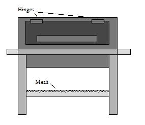 - Cut out the wire mesh sheet to the same width and length as step 7 and weld on to the shelf 300 mm from the floor level of the barbecue