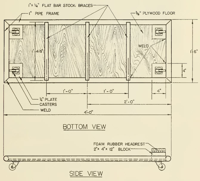 The plans on how to build a mechanics creeper is in image form below. The list of materials needed to build it are just below the plans.