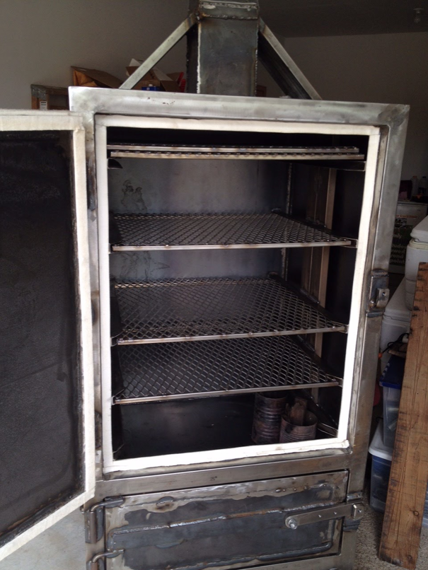 It is insulated by ceramic fiber 2” thick (fiberfrax and fired by a small 14K Btu Propane burner from www.gassmoker.com I’ve converted 3 pre-fab smokers using burners from this site and cannot speak enough good things about his service and quality products.